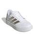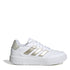 Playful and fresh, these adidas Courtblock Trainers offer a bold style that's never over the top. The stacked midsole gives a little extra height, while the synthetic leather upper and rubber cupsole team up for all-day comfort. Whether you're pairing them with your favourite jeans or a casual dress, these shoes help you make a subtle statement. Product Highlights: - Composition: Upper: synthetic. Lining: textile. Sole: rubber. - Care: Refer to product instructions.
