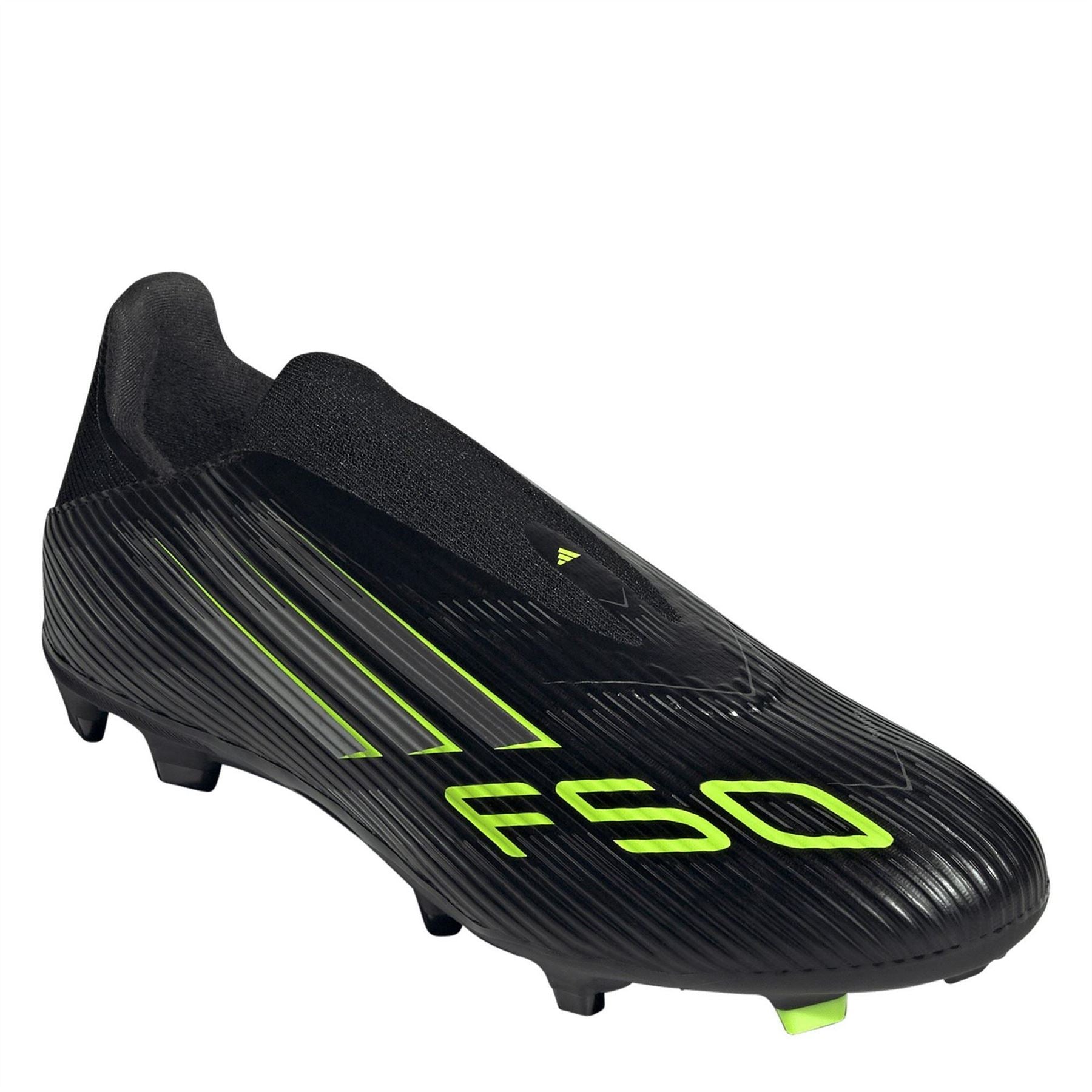 Unlock your speed and play with confidence in the adidas F50 League Laceless Football Boots. Made for players who excel in fast-paced action, they feature a striking Sprintgrid print and a lightweight Fiberskin upper with an adaptive laceless collar for a secure fit and seamless ball contact. The Sprintplate outsole delivers quick acceleration on various ground types. Ideal for match days, training drills, or fast breaks down the wing. Product Highlights: - Signature 3-Stripe design ensures a classic fit. - Comfortable knit collar with TPU backing for enhanced foot lockdown at higher speeds - Composition: Synthetics, Textile. - Care: Refer to product label.