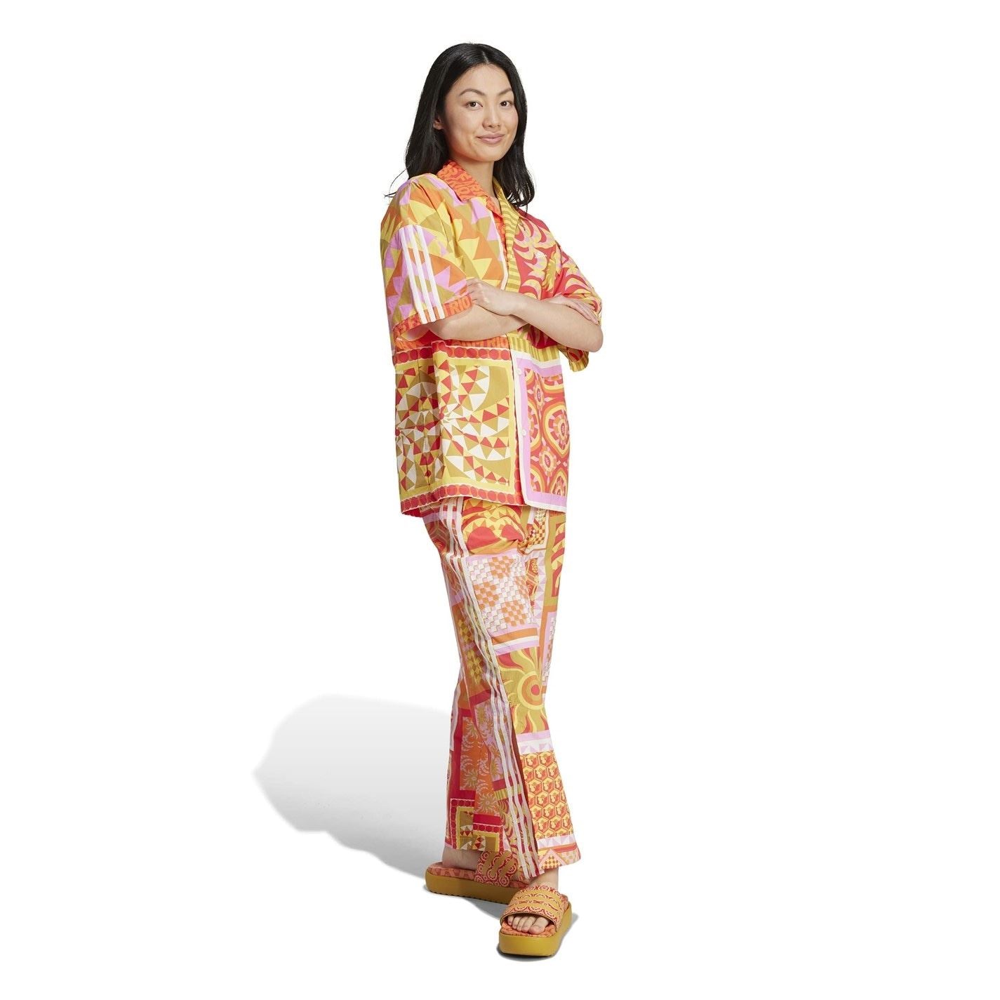 Elevate your ensemble with this vivacious adidas x Farm Rio Top. Inspired by the vibrant colours of a kaleidoscope and the rolling waves of Copacabana Beach, this shirt stands out whether you're by the ocean or grabbing a post-gym smoothie. The plain weave fabric won't weigh you down, wherever the day takes you.From days at the beach to trips into the city this shirt exudes a vibrant appeal. Product Highlights: - Allover FARM Rio graphic print - Regular fit - Composition: 100% Recycled Nylon - Care: Machine wash to care instructions
