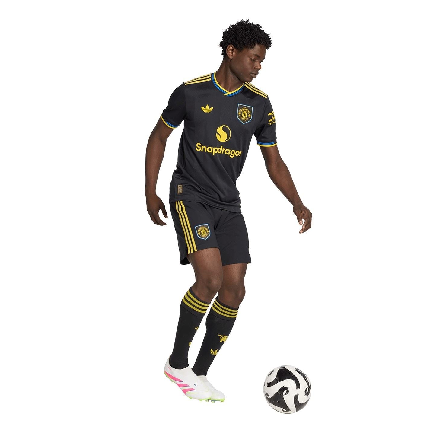 Take your support to the next level with the adidas Manchester United Authentic Third Shirt 2025/26. This ultra-lightweight shirt is worn by the players on matchdays, built with innovative HEAT.RDY technology to keep you cool and dry when the action heats up. Featuring a sleek solid colourway, it’s finished with a bold yellow adidas Trefoil and the iconic Manchester United crest for a standout look on and off the pitch. Perfect for training for the top, big final games, or repping United in style. Product Highlights: - Cut in a slim fit for an athletic silhouette. - Designed to wick away moisture for comfort as you play. - Composition: 100% polyester. - Care: Machine washable.