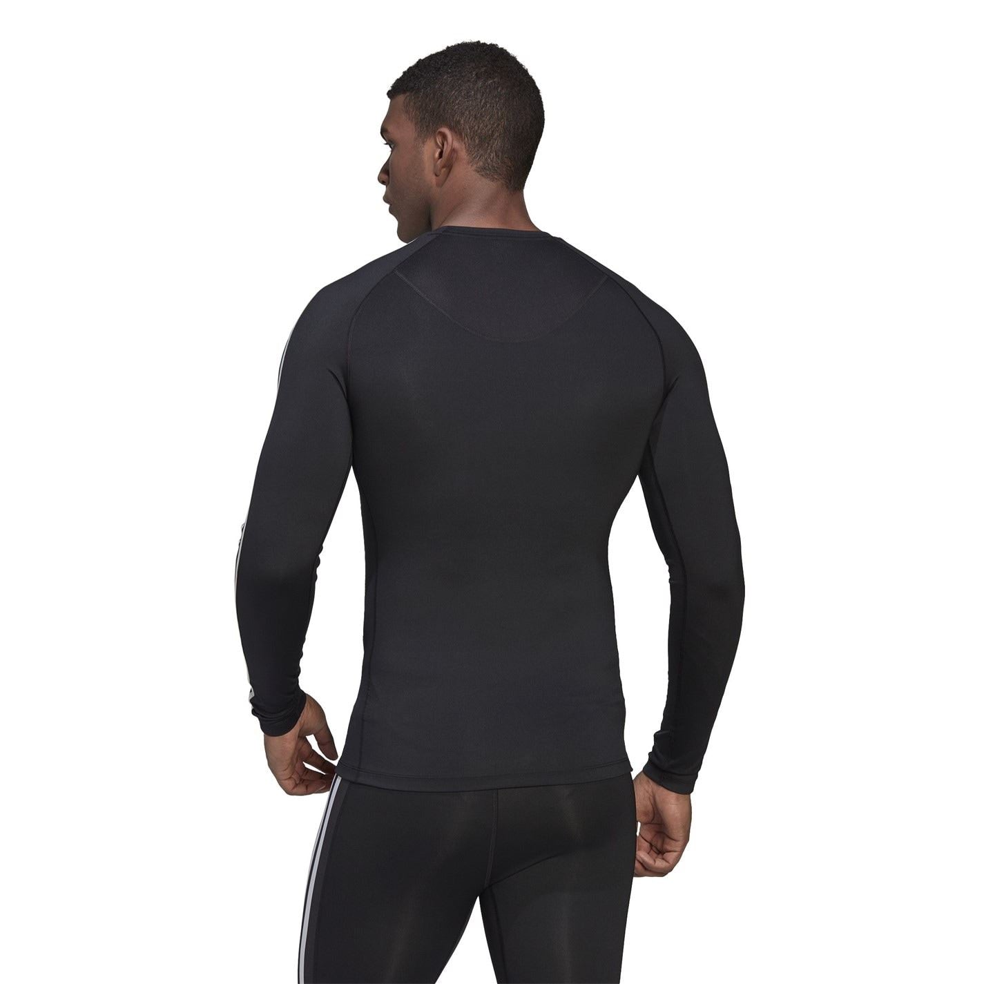 adidas Techfit 3 Stripe Long Sleeve T Shirt Mens