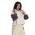 This adidas Originals cropped sweatshirt features a relaxed fit with long drop shoulder sleeves. The hooded neckline and drawstring closure provide a cosy feel. The color block pattern and logo embellishments add a stylish touch, making it a versatile addition to your wardrobe.