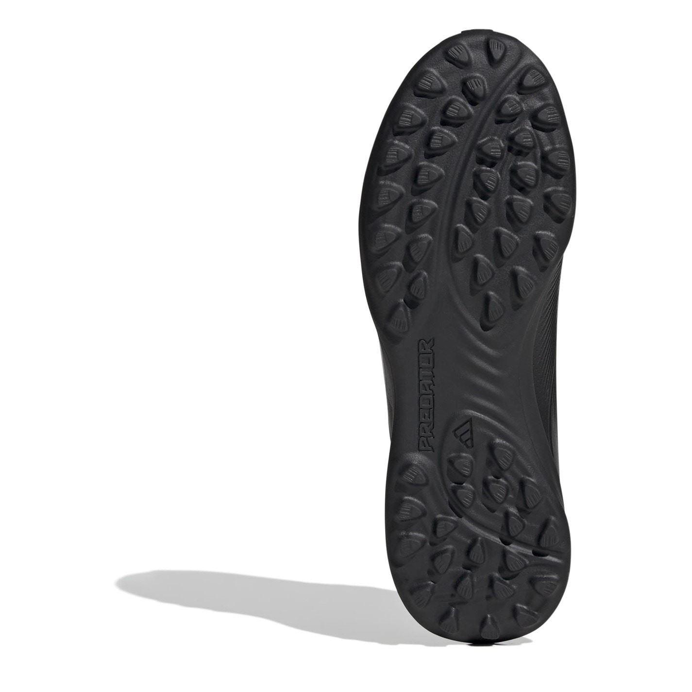 Get ready to unleash your goal-scoring potential with the adidas Predator 24 League Junior Turf Boots. Inspired by the thrill of finding the net, these textured boots are designed to help young players hit their mark on artificial turf every single time. Crafted with perfection in mind, the all-new adidas Predator is your ultimate partner on the pitch. The 3D texture and grippy Strikescale fins on the medial side of the Hybridfeel upper maximize control and accuracy during shooting, making sure you can put the ball exactly where you want it. The lug rubber outsole offers stability, so you can confidently navigate the artificial turf courts with ease. With a laced low-cut collar and secure lace closure, these boots provide a comfortable and supportive fit that keeps your focus on the game. And of course, the bold lateral branding and iconic 3-stripes showcase your style and commitment to excellence. Composition: Synthetic. Lining: Textile. Sole: Rubber. Follow care instructions.