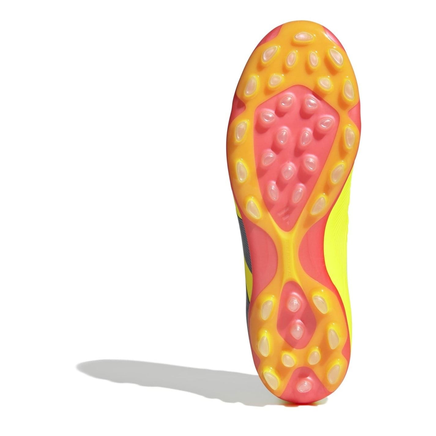 Introducing the adidas Predator Elite 2G 3G Artificial Grass Football Boots - the ultimate weapon for scoring goals with utmost precision. Designed with the game's most crucial moments in mind, these boots are engineered to find the net, every single time. Made in part with recycled materials, adidas demonstrates their commitment to sustainability without compromising on quality. The HybridTouch 2.0 upper provides added flexibility, allowing you to unleash your full potential on the field. To enhance your shooting accuracy, rubber Strikeskin fins are strategically placed on the upper, delivering biting grip and ensuring your shots hit their mark with laser-like precision. Experience comfort and support with the adidas PRIMEKNIT collar and specialist outsole, ensuring a secure and locked-in feel on 2G and 3G pitches. With 37 studs strategically placed for maximum ground surface contact, these boots offer exceptional stability on multiple generations of artificial grass. The innovative stud shape, a combination of rounded and bladed structures, evenly distributes pressure across your foot and all surfaces, enabling agile movements and superior control. Emblazoned with the iconic 3-stripe branding, the full lace closure allows you to customise the fit to your preference, providing maximum comfort throughout the game. Channel your inner predator and seize every opportunity to score that winning goal. Upper: Textile. Lining and Sole: Synthetic.