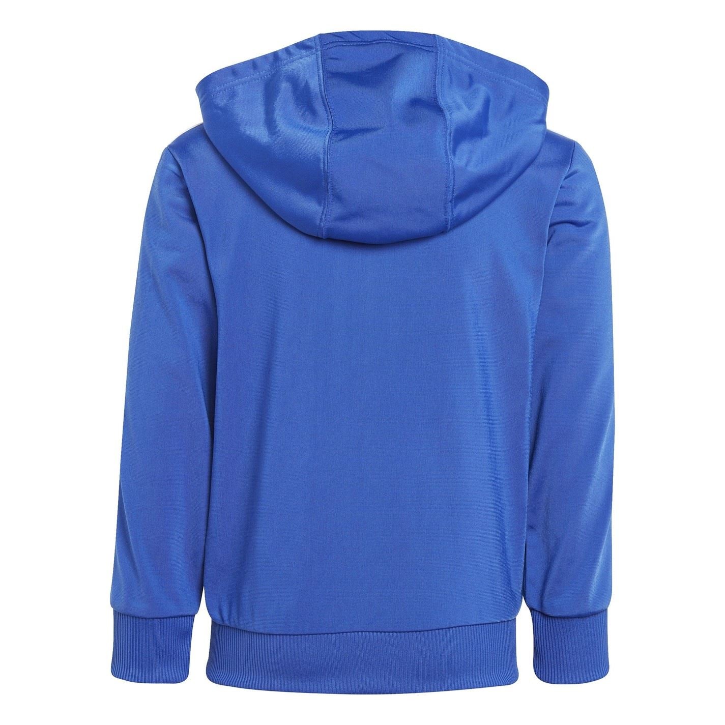 Update your child's casual collection with the 3 Stripe Poly Tracksuit from Adidas. Made from a soft recycled polyester fabrication, this cosy fit and sport inspired design is sure to become a new wardrobe essential. The top has been designed with ribbed trims to the bomber-style neckline, cuffs on the long sleeves and straight hem, secured with a full zip fastening and two slip pockets, while the bottoms feature an elasticated waistband and cuffs. Complete with a contrasting three stripe detail to the upper arms and seams to the legs, this set is branded with the signature Adidas logo.
