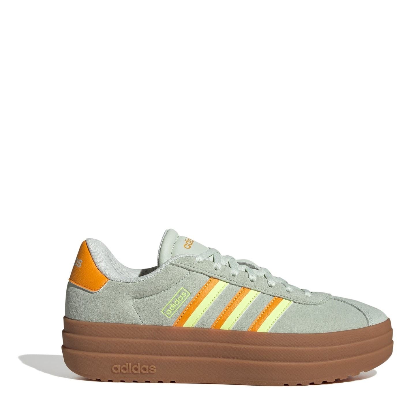 Get ready to unleash your style with adidas' VL Court Bold Shoes! Combining the edgy flair of skateboarding with the urban vibes of streetwear, this pair are a game-changer. Crafted with premium leather uppers and featuring round toes, lace fastenings, and padded collars with supportive textile linings, these women's trainers are designed with your comfort in mind. Durable platform rubber outsoles and patterned treads create a showstopping look, bringing unmatched style while providing exceptional grip on any terrain. With their solid base colour and contrasting heel counters, these women's platform trainers make a bold statement wherever you go and effortlessly style into any ensemble. adidas' iconic 3-Stripes motifs on the sides and the striking lateral lettering on the tongues, heels, and midsoles ensure instant brand recognition with a pinch of athletic flair. Whether heading out to meet friends, exploring the city, or lounging at home, adidas' VL Court Bold Shoes are a perfect choice. Embrace your individuality, turn heads, conquer the streets, and don't look back!