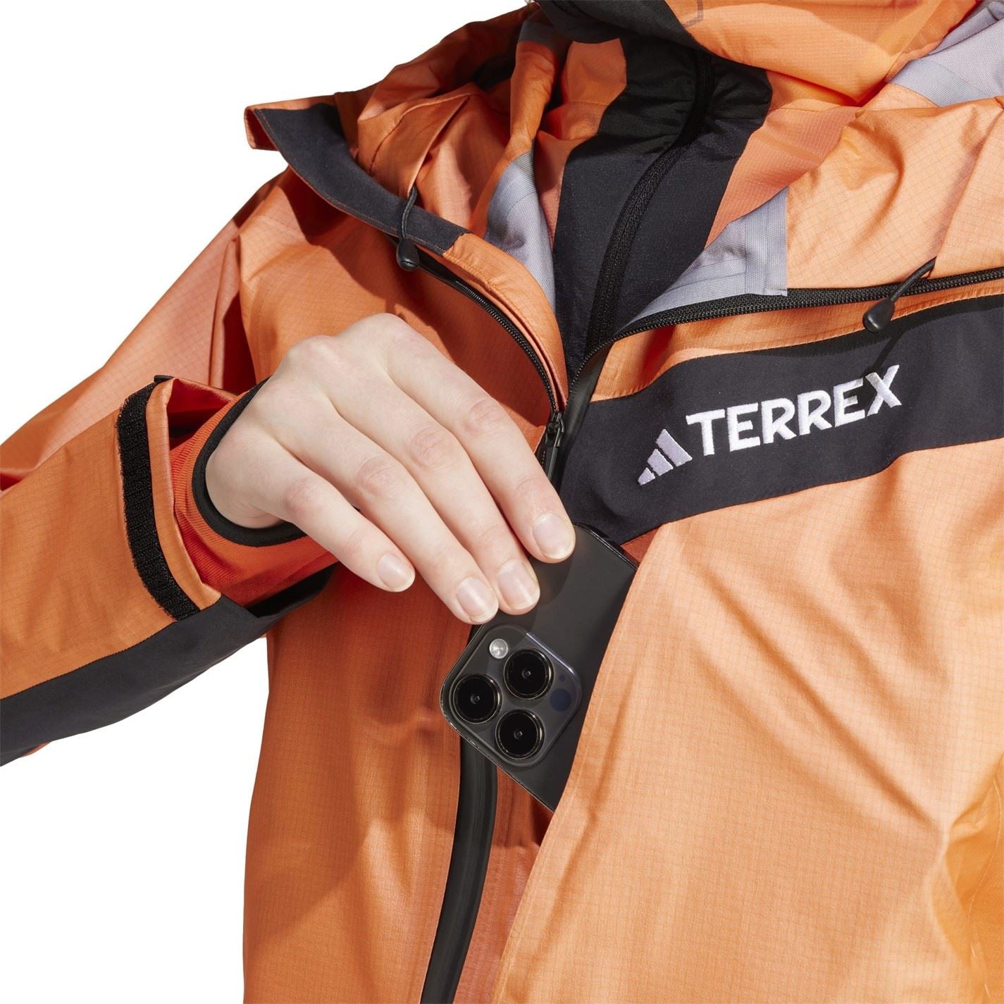 adidas Women's Solid Patterned Hooded Full Zipper Rain Jacket
