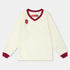 This Gray Nicolls top features a solid pattern with long sleeves and a V-neck. Designed in a regular fit, it includes ribbed cuffs for added comfort. The top is embellished with a logo and patch, adding a distinctive touch to its classic design.