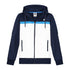 Elevate your activewear collection with the K-Swiss track jacket, featuring a hooded design and zipper closure. This regular fit jacket showcases a color block pattern and is adorned with a logo embellishment. The ribbed cuffs add a touch of detail, ensuring both comfort and style for your athletic pursuits.