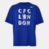 Show your pride for the Blues with the Nike Chelsea London T-Shirt. Featuring a sleek solid colourway for a bold and modern look, it’s designed in a comfortable regular fit that’s ideal for everyday wear. Finished with a standout Chelsea graphic and the iconic club crest, it's perfect for matchdays, casual outings, or repping your team wherever you go. Product Highlights: - Nike Swoosh on the front for striking look. - Designed with a regular fit. - Composition: Refer to product label. - Care: Machine washable.