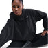 This Nike jacket from the activewear collection features a hooded neckline and a full zipper closure. Designed with a relaxed fit, it has a short length and a curved hem. The solid pattern is complemented by a logo embellishment, while ribbed cuffs add a touch of detail.