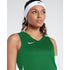 This Nike top is designed for performance with a regular fit and a sleeveless design. It features a V-neck and a straight hem, offering a sleek and solid look. The top is embellished with a logo, adding a touch of brand identity.