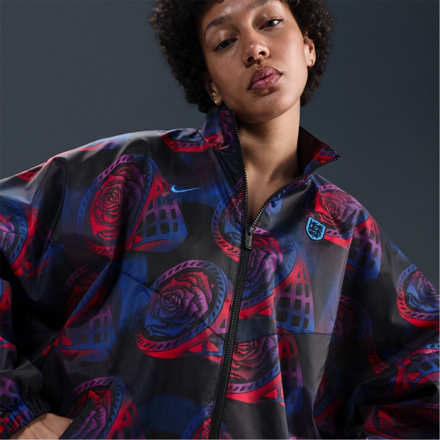 A modern take on a Nike icon, the England Essential Windrunner blends heritage design with national pride. The drawcord on the hem and the full zip design provide an adjustable fit, while the all-over rose print creates a unique touch. Ideal for unpredictable weather on match days, training sessions, or everyday wear with a sporty edge. Product Highlights: - Two front pockets for practicality. - The back vents provide breathability. - Composition: 100% polyester. - Care: Machine washable.