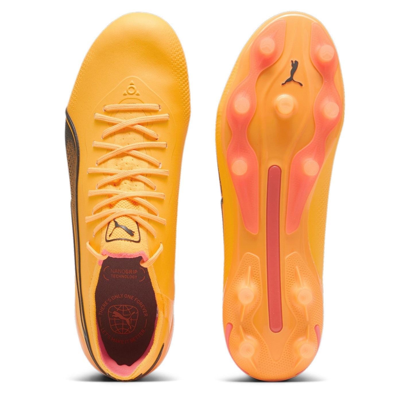 Introducing the Puma King Ultimate Firm Ground Football Boots, designed for the rising stars of the game. Puma, a brand driven by passion and innovation, has taken an old-school classic and infused it with modern technology to create a boot that delivers on both style and performance. The K-BETTER upper of the Puma King Ultimate has been carefully developed to reduce environmental impact without compromising on quality. This innovative material offers a flexible forefront and a lightweight feel, allowing players to move with agility and precision on the field. But it's not just about style. Puma understands the importance of stability, which is why these boots feature an integrated stability spine and an external heel counter. These features work together to provide excellent support and keep players locked in during intense gameplay. To complete the package, the Puma King Ultimate boots are equipped with moulded conical studs, ensuring optimal traction on firm ground surfaces. Whether it's dribbling past defenders or striking the winning goal, these boots are designed to enhance your performance and take your game to the next level. Embrace the legacy of the Puma King series and conquer the pitch with confidence in the Puma King Ultimate Firm Ground Football Boots. Composition: Upper: K-BETTER. Lining: Textile. Sole: Synthetic. Care: Follow care instructions.