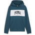 This Puma kids' sweatshirt combines comfort and style with its hoodie design and regular fit. Featuring long sleeves and a ribbed cuff, it also includes a hood and a practical kangaroo pocket. The front logo adds a distinctive touch, making it a perfect choice for casual wear.