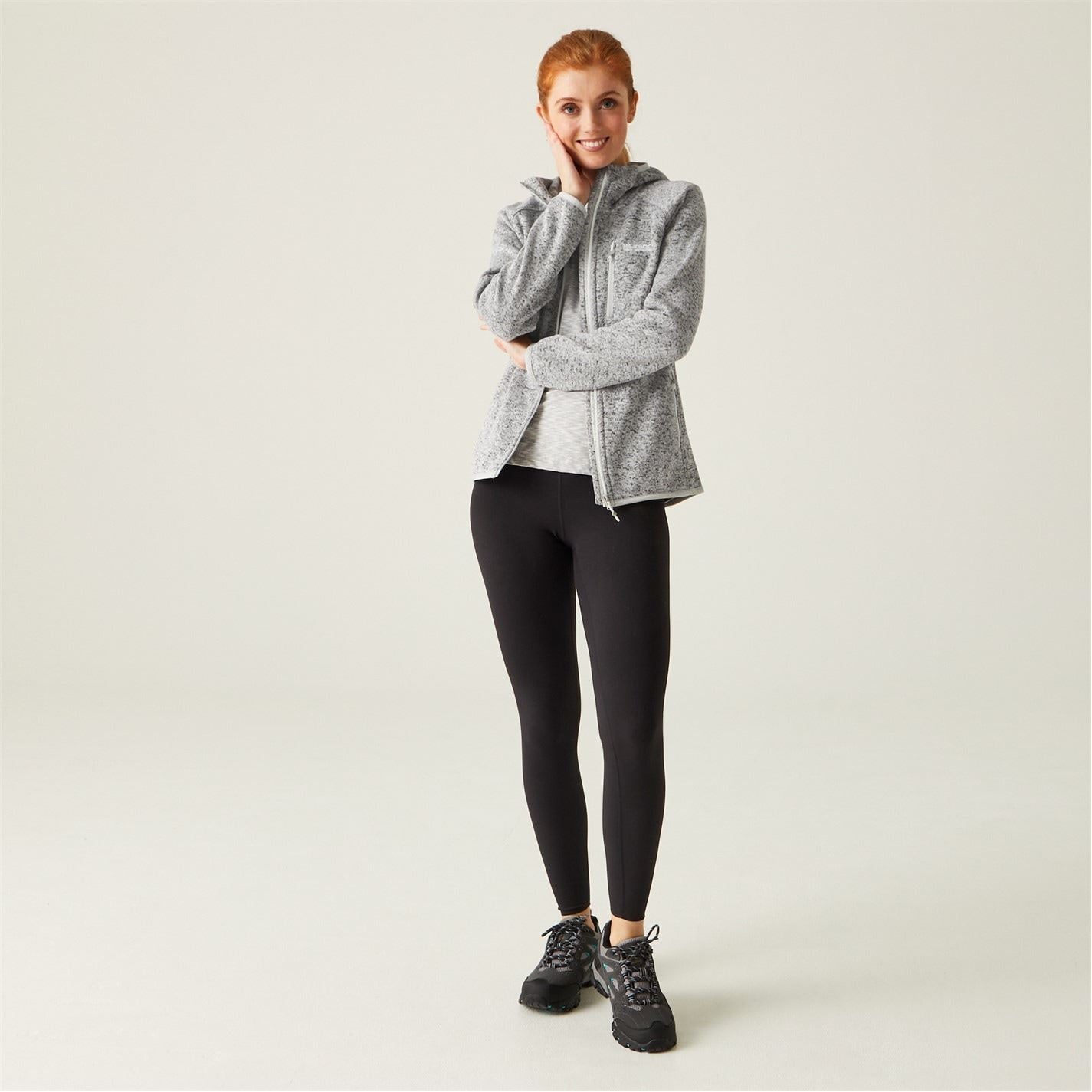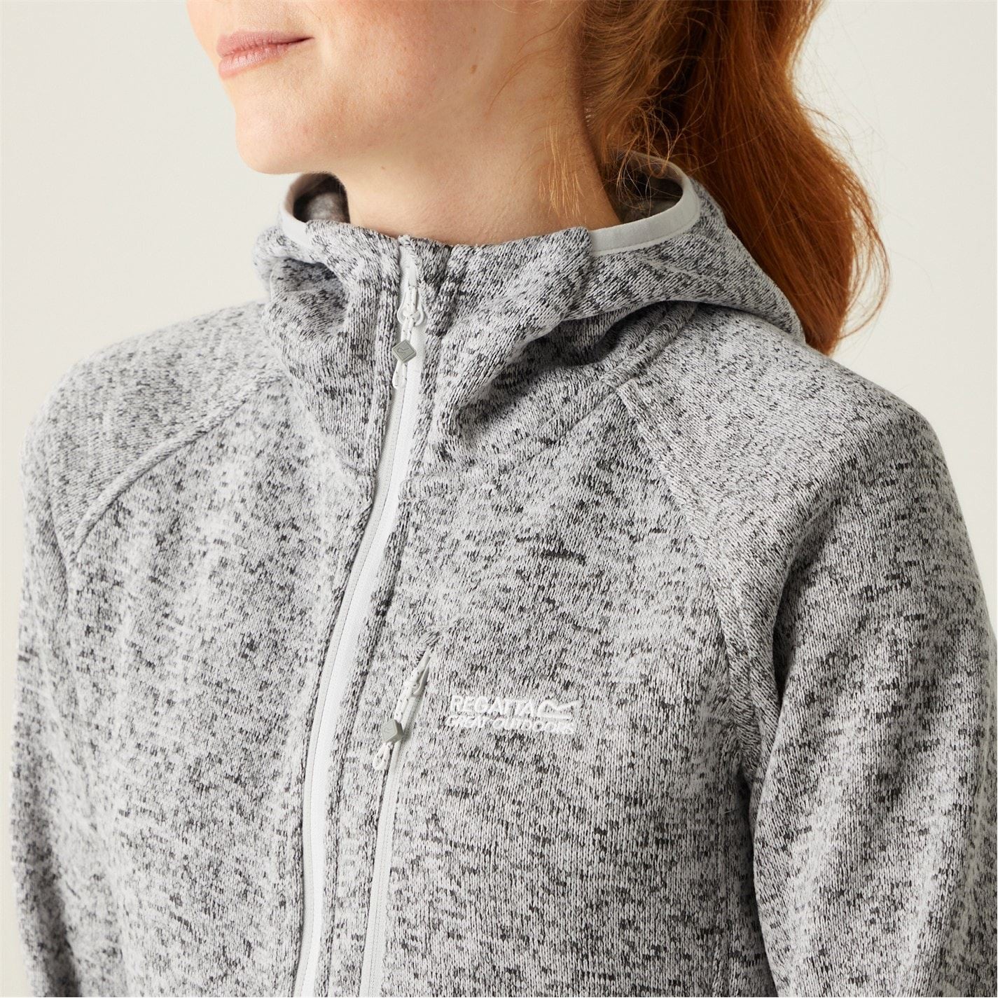 Soft, warm and outdoor-ready, our Hooded Newhill women's fleece is ideal for hikes or strolls. Crafted from marl brushed-back knit-effect fabric, it provides cosy comfort. A grown-on hood, stretch binding and multiple zipped pockets offer practicality and a secure fit.