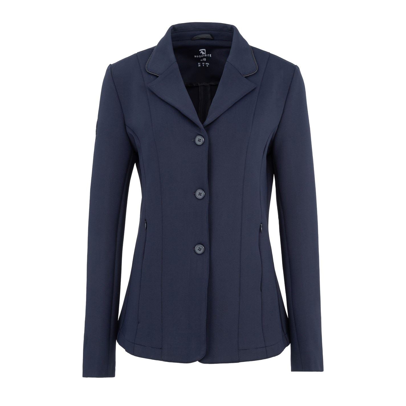 Navy-18 details **Requisite Classic Show Coat** Elevate your riding experience with the Requisite Classic Show Coat, designed for both style and value. This show jacket combines signature fit, exceptional tailoring, and traditional styling, making it a must-have for every rider. Additionally, the fabric boasts UPF50+ sun protection, quick-dry capabilities, water repellency, and excellent moisture-wicking properties, **Key Features:** - **Three-Button Front:** Self-colored buttons for a sleek appearance. - **Two Slant Zipper Pockets:** Convenient and stylish storage. - **Classic Three-Button Sleeves:** For a timeless touch. - **Double-Vented Back Panel:** Enhances comfort while in the saddle. - **Fully Lined Sleeves:** Provides ease and support. - Additionally, the monogram embroidered on the bicep area lends a classic, branded look to this versatile coat. Enjoy a refined, long-lasting show jacket that combines style, comfort, and value. Navy-19 Details **Requisite Ultra Premium Show Coat** Enhance your riding performance with the Requisite Ultra Premium Show Coat, crafted from advanced technical fabric to blend style, durability, and exceptional value. This jacket offers a signature fit, precise tailoring, and traditional styling that every rider will appreciate. The fabric excels with UPF50+ sun protection, quick-dry capabilities, water repellency, and superior moisture-wicking properties, ensuring you stay comfortable and shielded in any weather. **Key Features:** - **Three-Button Front:** Self-colored buttons for a sophisticated look. - **Two Flap Pockets:** Stylish and functional storage. - **Classic Three-Button Sleeves:** Adds timeless elegance. - **Double-Vented Back Panel:** Enhances comfort and freedom of movement in the saddle. - - **Advanced Fabric Properties:** UPF50+ sun protection, quick-dry, water-repellent, and moisture-wicking. A high-definition logo, printed on the pocket in a tonal color, adds a touch of luxury and sophistication. Discover a show jacket that seamlessly combines premium style, comfort, and performance.