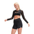 Embrace functionality and style with this Speedo athletic top. Designed with a crew neck and long sleeves, it features mesh details for enhanced breathability. The slim fit accentuates your silhouette, while the cropped length adds a modern touch. Ideal for performance activities, this top is a versatile addition to your activewear collection.
