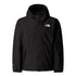 The North Face junior rain jacket is designed for wet weather with its water-repellent feature. It has a hooded neckline and a regular fit, ensuring comfort and protection. The jacket includes an elasticated cuff and a straight hem, with a solid pattern and a logo embellishment for a classic look.
