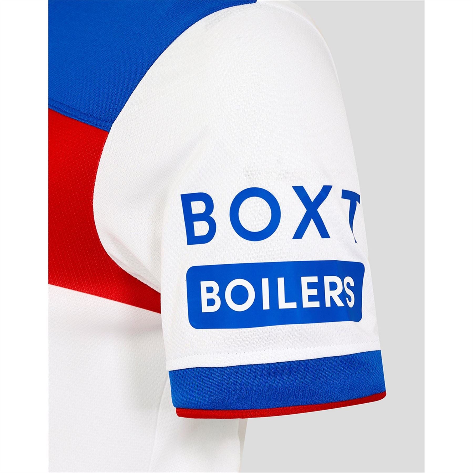 Represent the Gers in style with the Umbro Rangers Away Shirt 2025 2026. Designed in a slim fit for a sharp, athletic silhouette, the shirt features a white base with bold red and blue block colours for a standout look. Crafted to wick away moisture and keep you focused, it's ideal for tough matches, focused training or backing the team from the stands. Product Highlights: - Embroidered club crest for a distinguished finish. - Short sleeves and a straight hem for classic style. - Composition: 100% polyester. - Care: Machine washable.