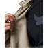 This Under Armour sweatshirt jacket features a hooded design with a high collar and a full zipper closure. The relaxed fit and drop shoulder sleeves offer comfort, while the ribbed cuffs and straight hem provide a neat finish. The solid pattern is complemented by a logo patch, adding a touch of brand identity.