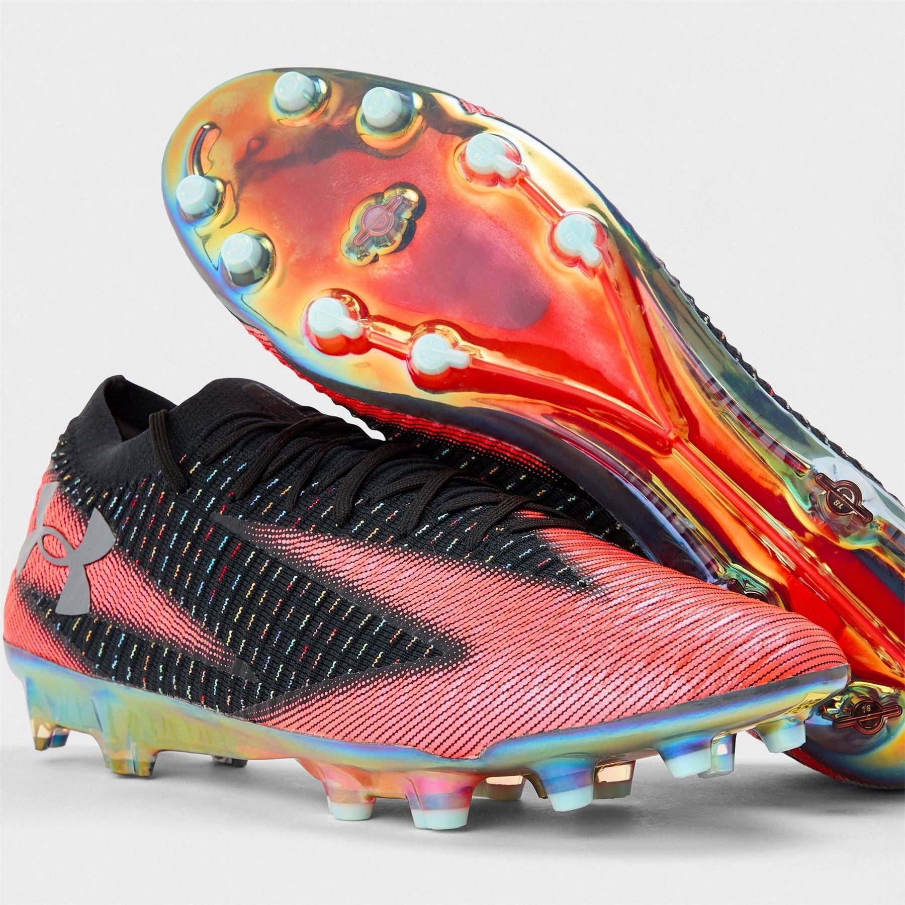 Discover Under Armour football boots, designed for optimal performance on the field. These shoes feature a closed toe for protection and a striking stripe pattern for a modern look. Perfect for athletes seeking durability and style in their sports footwear.