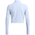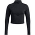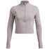 Under Armour's cropped top is designed for activewear enthusiasts. Featuring a mock neck and raglan sleeves, it offers a slim fit for enhanced performance. The solid pattern and logo embellishment add a sleek touch, while the zipper closure ensures convenience. Ideal for sporting activities, this top combines style and functionality.